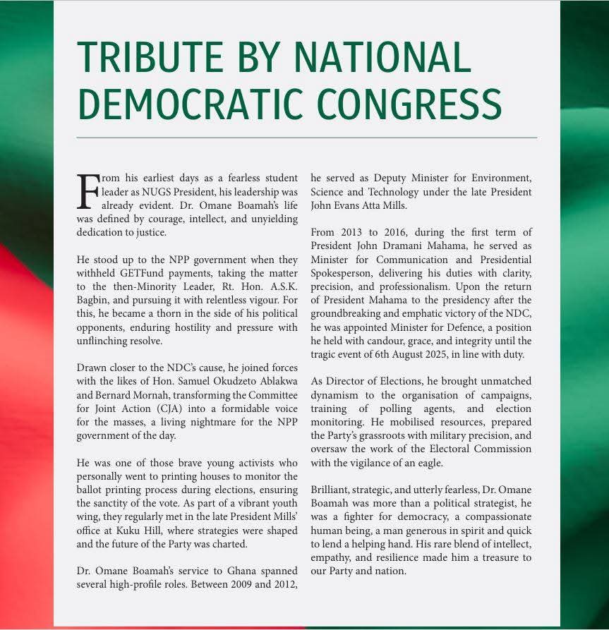 The governing National Democratic Congress (NDC) has its tribute to the late Dr Edward Omane Boamah as “utterly fearless” and more than a political strategist.
