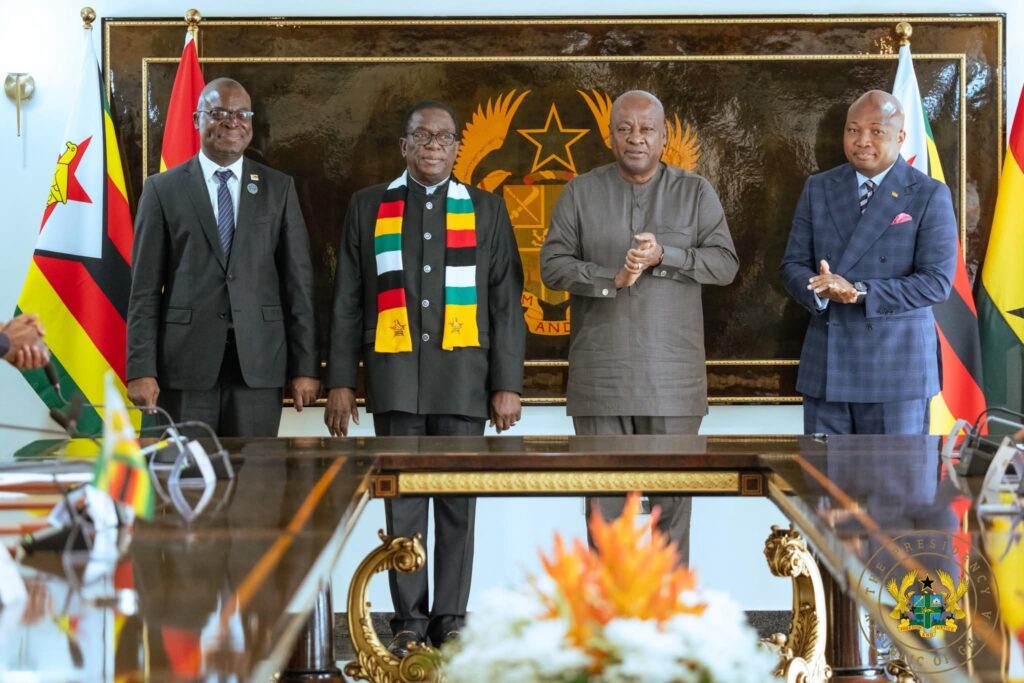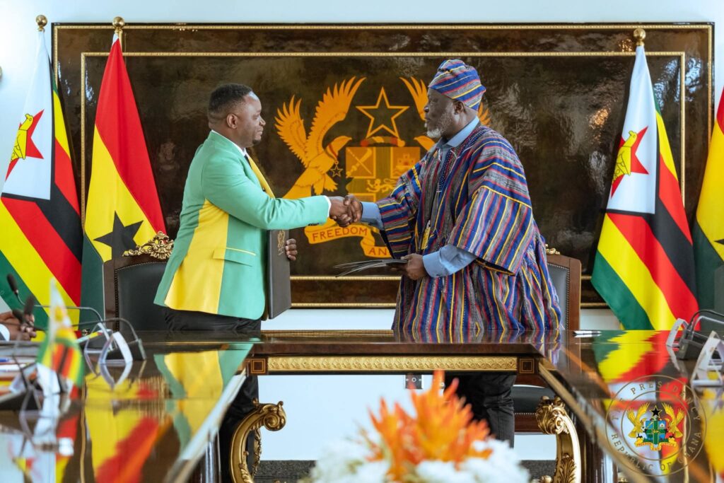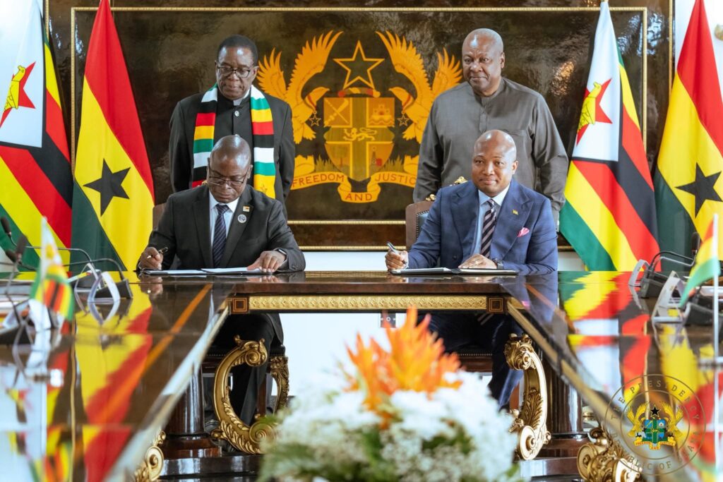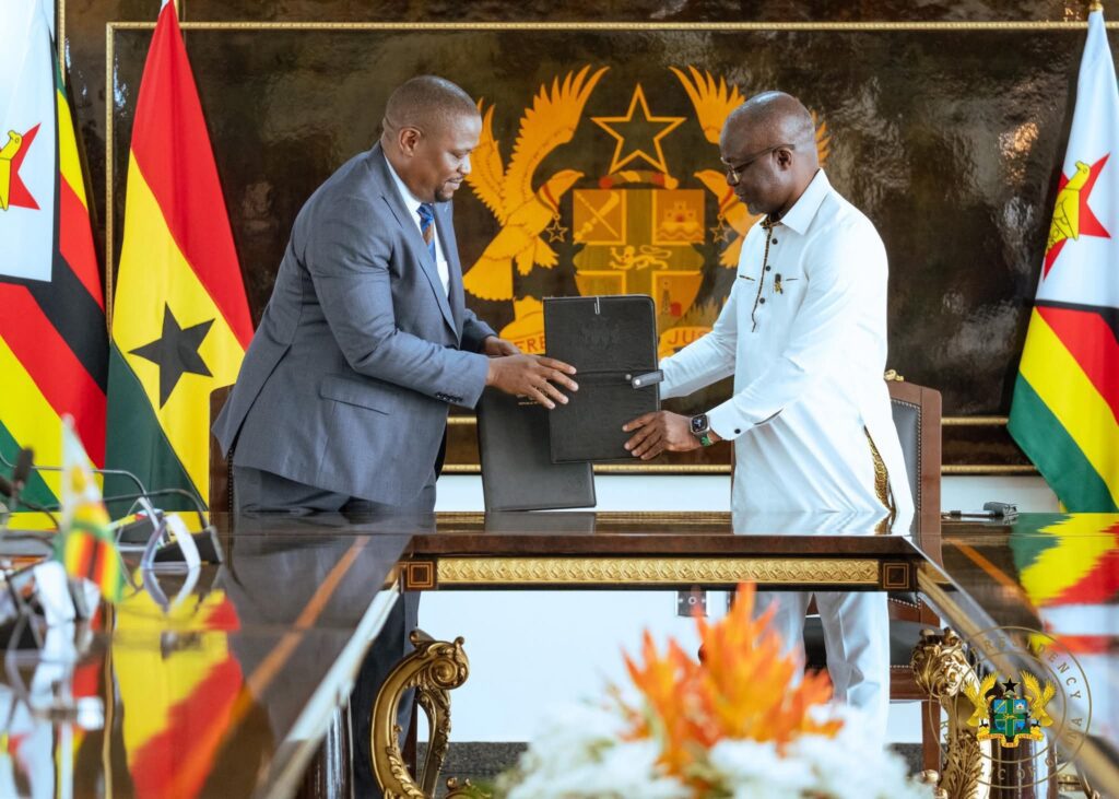 President John Dramani Mahama and President of Zimbabwe, H.E. Emmerson Mnangagwa have reaffirmed their shared commitment to deepening bilateral relations following the signing of multiple Memoranda of Understanding (MoUs) across strategic sectors.